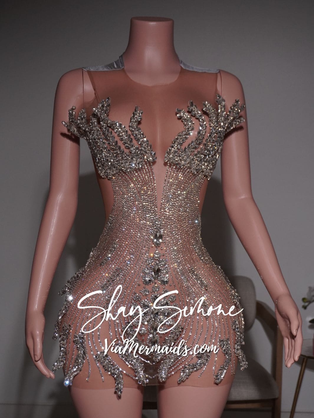 Reka - Silver Sheer Crystal Bling Rhinestone Dress